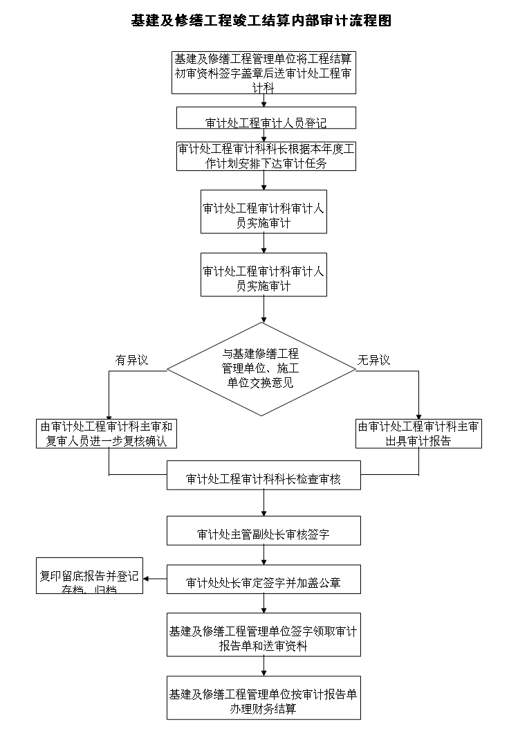 基建及修缮工程竣工结算内部审计流程图